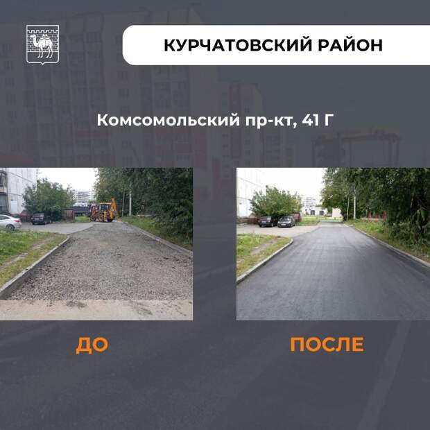 - В Курчатовском районе ремонт провели на подъездных путях и проездах вдоль домов. Всего — 17 объектов общей площадью 15 тысяч кв. м.