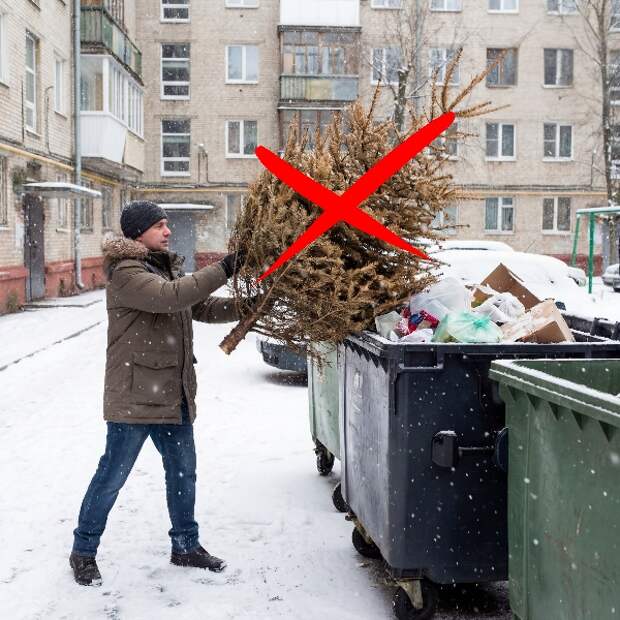 Спасибо, что не выбрасываете деревья в общий бак! Стволы серьезно повреждают механизмы мусоровозов, что ведет к поломкам и сбоям графика. Правильный алгоритм: аккуратно оставьте свою елку, сосну или пихту рядом с контейнерной площадкой. Специальная техника заберет их отдельно. Эти же правила — для крупногабаритного мусора (кровати, столы, стулья, матрасы и т. д.).